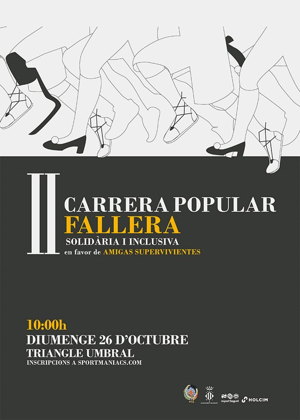 La Concejalía de Actividad Física, Salud y Deportes junto con la Federación Junta Fallera de Sagunto (FJFS) organizan la II Carrera Popular Fallera solidaria e inclusiva. Este evento deportivo, que recorre una distancia de 5 kilómetros, se llevará a cabo el domingo 26 de octubre a las 10 horas. El punto de salida y meta será el Triángulo Umbral y los beneficios de la carrera irán destinados a la asociación local Amigas Supervivientes. La prueba se podrá realizar tanto corriendo como caminando.
