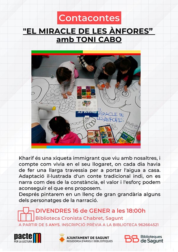 Toni Cabo interpretarà el contacontes El miracle de les ànfores el divendres 16 de gener a les 18 hores a la biblioteca Cronista Chabret.