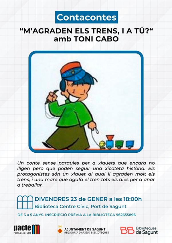 Toni Cabo interpretara el contacontes M'agraden els trens, i a tu? el divendres 23 de gener a les 18 hores a la biblioteca del Centre Cívic Antic Sanatori.