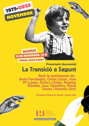 La Regidoria de Joventut i Infància presenta el documental La Transició a Sagunt. Serà el dijous, 13 de novembre, a les 18 hores al Casal Jove del Port de Sagunt.