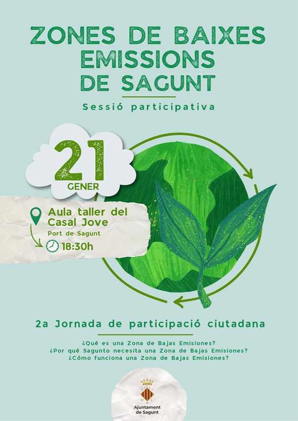 La Regidoria de Mobilitat Urbana ha organitzat una sessió oberta a tota la ciutadania sobre l'Ordenança Reguladora de la Zona de Baixes Emissions (ZBE) de Sagunt. Este esdeveniment informatiu se celebrarà el dimecres, 21 de gener, a les 18.30 hores al Casal Jove del Port de Sagunt. La xarrada pretén ser un espai de diàleg i trobada en el qual la ciutadania es puga informar, compartir inquietuds i aportar idees de manera prèvia a l'aprovació definitica de l'Ordenança.