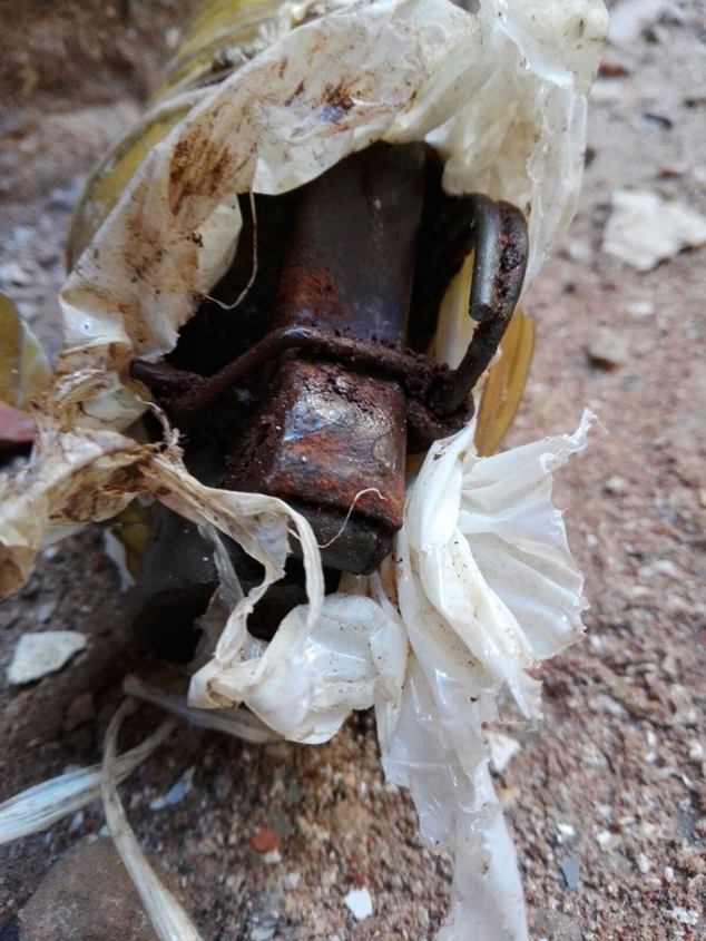 Según fuentes policiales, por la espoleta puede ser una granada o de piña polaca o una cilíndrica tipo Ferrobellum. Tiene la anilla y el cuerpo de espoleta de plomo. Conserva la palanca y los pasadores, y probablemente el explosivo, aunque en mal estado.