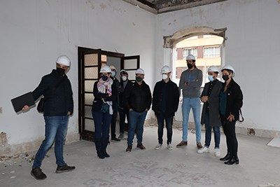 Allí, el personal técnico que trabaja en la reforma del inmueble les ha explicado lo que ya se ha ejecutado y lo que resta por hacer, así como los elementos que se mantendrán por su interés histórico, como los suelos, algunos revestimientos de las paredes o los baños y parte del mobiliario empotrado de las antiguas habitaciones en las que se alojaban los ingenieros de Altos Hornos de Vizcaya cuando llegaban destinados de manera temporal a la factoría.
