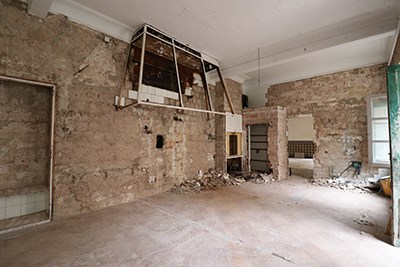Los trabajos de rehabilitación íntegra del edificio del Casino Recreativo y Cultural de Puerto de Sagunto, situado en lo que fuera en otro tiempo la Gerencia de Altos Hornos del Mediterráneo, ya están en la fase de derribo y desescombro de los interiores en ambas plantas del inmueble.