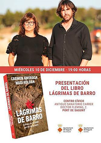 Carmen Amoraga y Maxi Roldán presentan ‘Lágrimas de Barro’. Los beneficios recaudados con el libro irán destinados íntegramente a las personas afectadas por la DANA. Este evento literario de carácter solidario está programado para este miércoles 10 de diciembre a las 19 horas en el Centro Cívico Antiguo Sanatorio de Puerto de Sagunto.
