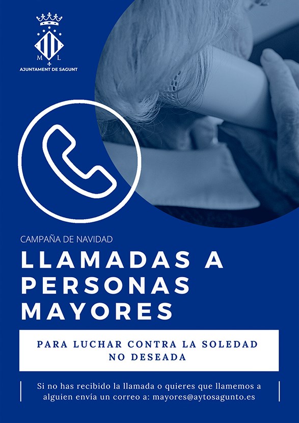 Un año más, desde el departamento de Servicios Sociales del Ayuntamiento de Sagunto, en concreto desde el Área de Mayores, se vuelve a llevar a cabo la campaña de Navidad de llamar a las personas mayores del municipio para saber cómo se encuentran en estas fechas del año. Cómo ya se ha hecho los años anteriores, se pondrán en contacto telefónico para interesarse por su estado y ofrecerles los servicios que se prestan desde el Ayuntamiento de Sagunto. Esta iniciativa está dentro de las acciones encaminadas a luchar contra la soledad no deseada.