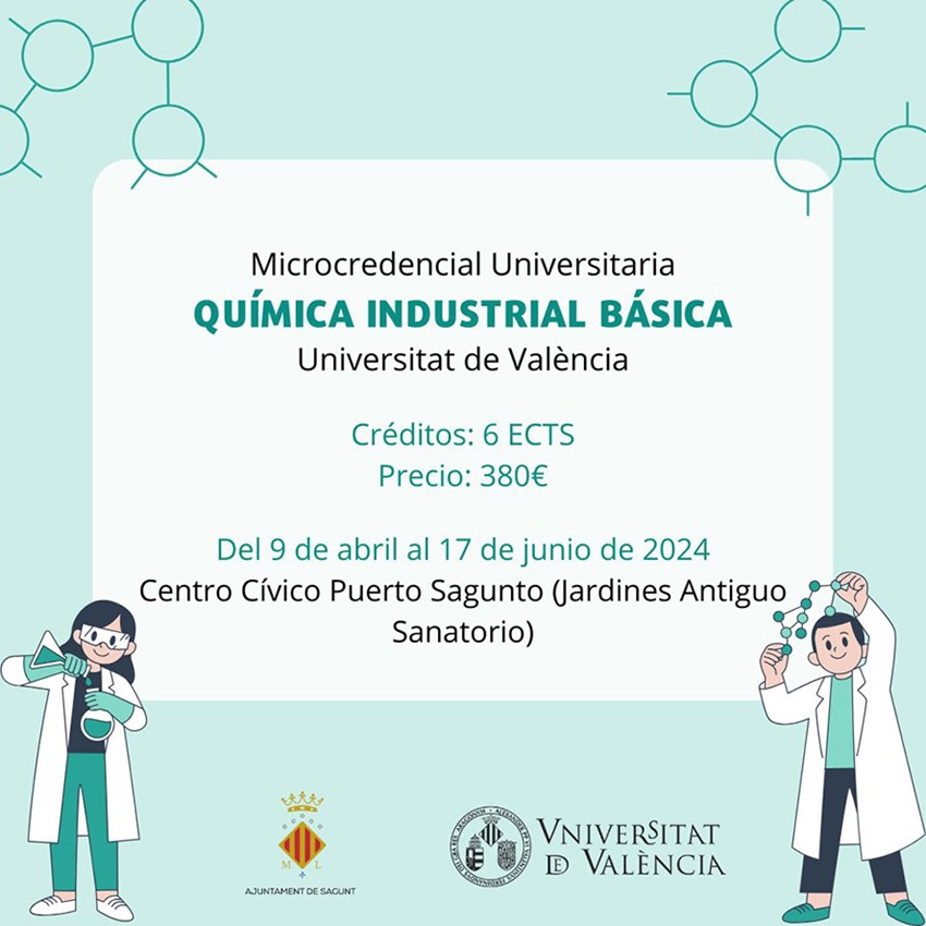 El Ayuntamiento de Sagunto y la Universitat de València han ampliado el plazo de inscripciones a la microcredencial universitaria en Química Industrial Básica hasta el 27 de marzo. Además, el consistorio ha planteado una modificación de los horarios de impartición de la formación, que, finalmente, se llevará a cabo lunes, martes y viernes, de 16 a 18 horas. «Nos hemos encontrado con la situación de que muchas personas tenían interés en acudir al curso, pero les era imposible compatibilizarlo con su horario de trabajo. Por eso, en coordinación con la UV, hemos conseguido que las clases se realicen en horario de tarde», ha explicado el concejal de Universidad, Ciencia e Innovación, Toni Iborra.