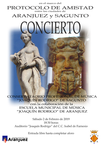 Este concierto surge del Protocolo de Amistad que las ciudades de Aranjuez y Sagunto mantienen desde 2015, que tiene su origen, precisamente, en la figura del Maestro Rodrigo y que se ha ido materializando en diversos encuentros culturales mantenidos por vecinos de ambos municipios.