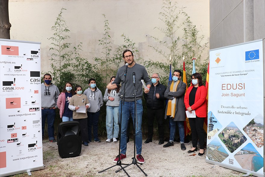 En el acto han participado el alcalde de Sagunto, Darío Moreno; el concejal de Juventud e Infancia, Guillermo Sampedro; la concejala responsable de la EDUSI, Natalia Antonino y el director general del Institut Valencià de la Joventut (IVAJ), Jesús Martí. Todos ellos acompañados por miembros del Equipo de Gobierno, de la Corporación Municipal y de la ciudadanía.