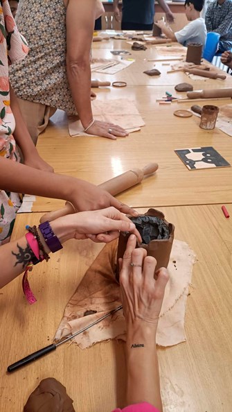 Tras la inauguración, el alumnado de 6o curso del CEIP Profesor Tierno Galván ha participado en un taller de cerámica del programa SASEM (Servicio de Atención y Seguimiento para la Enfermedad Mental). El martes 8 de octubre se desarrollará otra sesión con la que se aproximará a los alumnos y las alumnas a la realidad de las personas que tienen algún tipo de problema en relación a la salud mental.