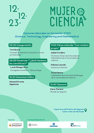 Es una iniciativa que pretende dar visibilidad al papel de la mujer en la ciencia y contará para ello con la participación de científicas del municipio como Isabel Cordero (profesora titular de la Facultad de Matemáticas de la Universidad de Valencia), Paloma Lizondo (doctora en Química), Nuria Paricio (catedrática de la Facultad de Biología de la Universidad de Valencia). Ellas, a través de su propia experiencia personal, pondrán el valor de la llamada formación STEM (Science, Technology, Engineering y Mathematics). Tres magníficos ejemplos de profesionales con los que contrarrestar la histórica ausencia de referentes femeninos y servir de inspiración para alentar su vocación investigadora.