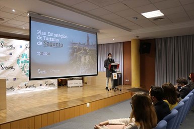 El alcalde de Sagunto, Darío Moreno, y la concejala delegada de Turismo, Natalia Antonino, han presentado junto al secretario autonómico de Turismo, Francesc Colomer, el plan estratégico en un acto que ha contado con la presencia de más concejales y concejalas de la Corporación municipal, personal técnico de Turismo y de Salto Consultores –a la que fue adjudicada la asistencia técnica para la elaboración del plan– y empresas adscritas al Sistema Integral de Calidad Turística Española en Destinos (SICTED).
