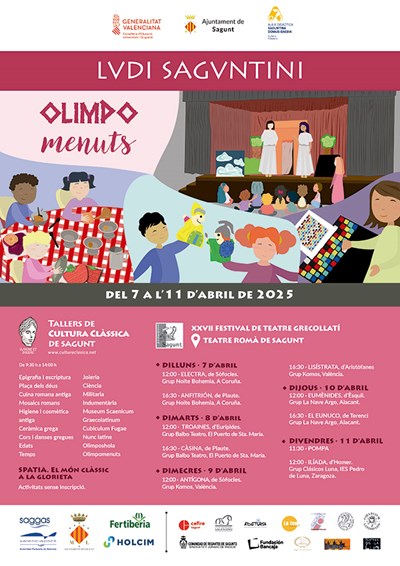 Els Lvdi Saguntini rememoraran el passat clàssic de la ciutat des del dilluns 7 al divendres 11 d'abril amb diversos tallers didàctics de cultura clàssica, així com amb la XXVIII edició del Festival de Teatre Grecollatí en la qual es representaran nou obres en el Teatre Romà de Sagunt. Durant estos dies, milers d'estudiants de la ciutat, però també d'altres llocs d'Espanya gaudiran aprenent dels diversos tallers de cultura clàssica i de les obres de teatre interpretades per grups d'estudiants.