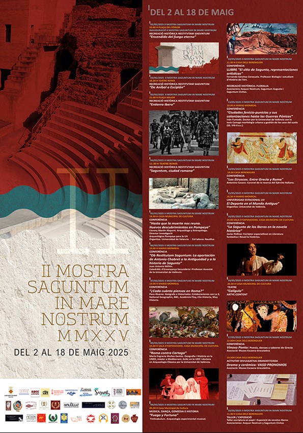 La programació té dos parts diferenciades. D'una banda, les jornades de recreació històrica “Restitvtam Sagvntvm”, del 2 al 4 de maig. Comptaran amb la presència de prop de 200 recreacionistes de fins a setze associacions procedents de tota Espanya. Els actes més destacats són el Encendido del fuego eterno, amb el qual s'obrirà la mostra el divendres 2 de maig a les 20 hores a la plaça del Fòrum Municipal.