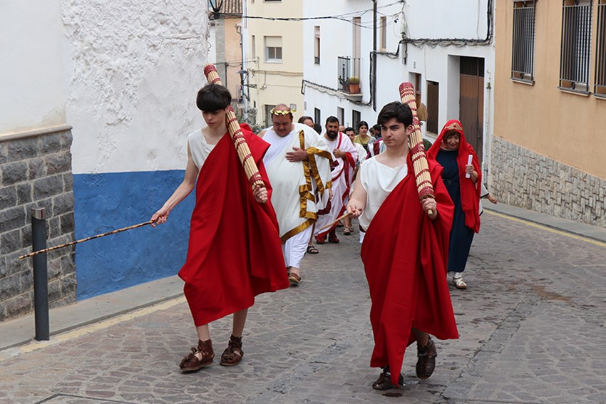 La desfilada de la Pompa i Totvm Latine, previs a la representació de La Ilíada d'Homer a càrrec del grup Clásicos Luna de l'IES Pedro de Luna de Saragossa, han posat el colofó als XXVIII Lvdi Sagvntini i Festival de Teatre Grecollatí.