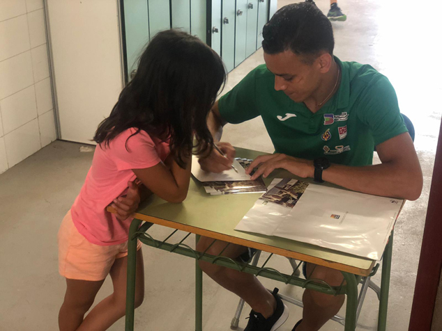El jove atleta saguntí, Abderrahman El Khayami, ha visitat hui, 8 de juliol, el Campus d'Atletisme per a conéixer als seus participants, aconsellar-los, fer-se fotografies i signar autògrafs.