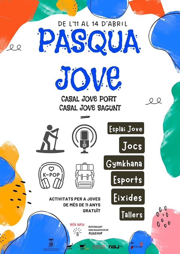 Pasqua Jove oferix activitats d'oci per als jóvens del municipi. Amb una gran oferta de tallers, activitats, jocs i eixides, la regidoria de Joventut pretén donar resposta a les necessitats, als interessos dels i les jóvens perquè desenvolupen i gaudisquen de les seues aficions en el seu temps lliure.