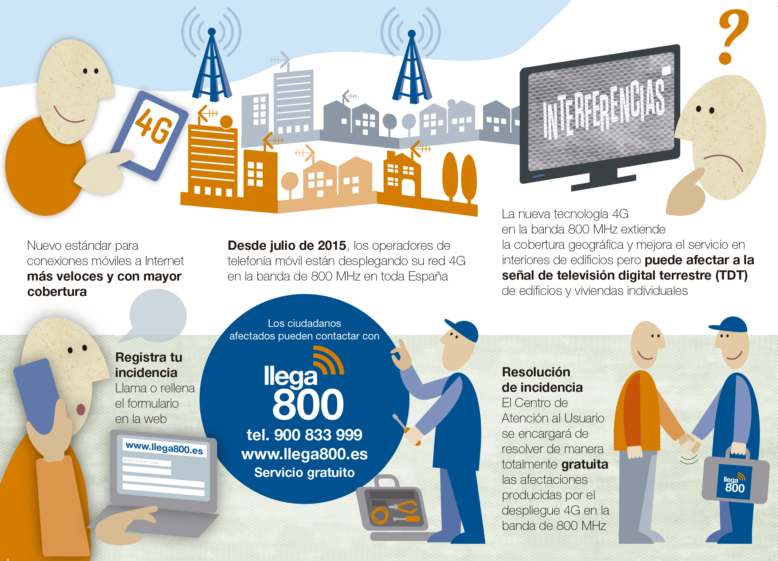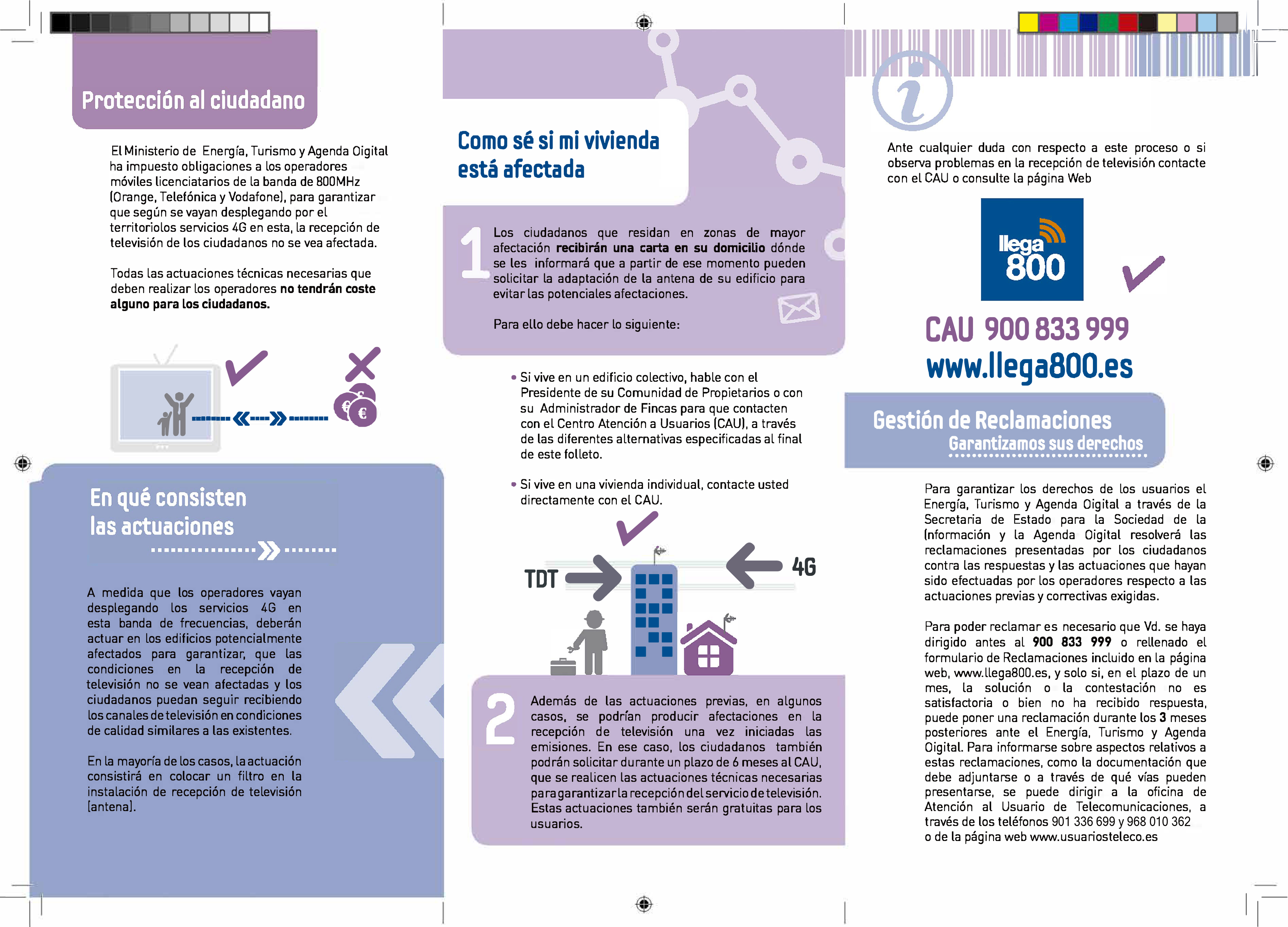 Per garantir esta compatibilitat, ‘Llega800’ presta als ciutadans una sèrie de serveis gratuïts que inclouen, d'una banda, una actuació prèvia, gràcies a la qual els ciutadans que residisquen en zones de major afectació rebran una comunicació en el seu domicili que els informarà que a partir d'eixe moment podran sol·licitar de forma gratuïta l'adaptació de l'antena del seu edifici per evitar possibles incidències.