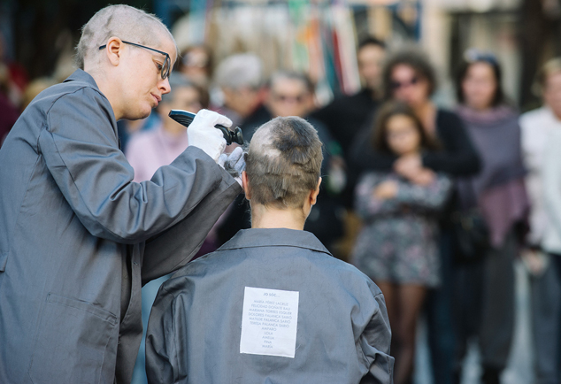 L'Ajuntament de Sagunt, una vegada més, torna a col·laborar i mostrar el seu suport a Art al Quadrat ja que, durant la programació d'actes del 25 de novembre, Dia Internacional de la Violència de Gènere, les delegacions d'Igualtat i Cultura van comptar amb les artistes per a una acció-homenatge on van participar nombroses persones de la localitat i fins i tot van donar flocs de pèl. A més, les germanes es van rapar el pèl una a l'altra ja que, el despullament del cabell era una de les vexacions patides, i van realitzar el passeig al que se'ls sotmetia, encarnant en els seus cossos la memòria i la dignitat d'aquelles dones.