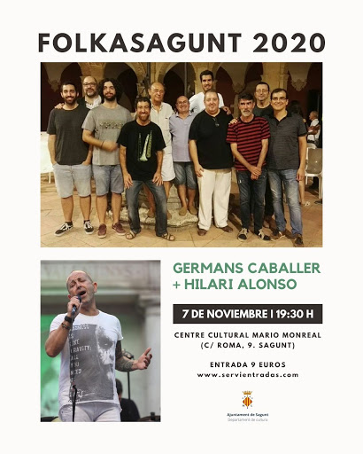 El pròxim dissabte, 7 de novembre, el Centre Cultural Mario Monreal acollirà a les 19.30 hores, el Folkasagunt 2020, un espectacle de música i ball tradicional valencià que forma part de la programació de tardor de la regidoria de Cultura. L'espectacle tindrà una duració aproximada de 100 minuts i l'entrada, que és per tots els públics, té un preu de 9 euros.