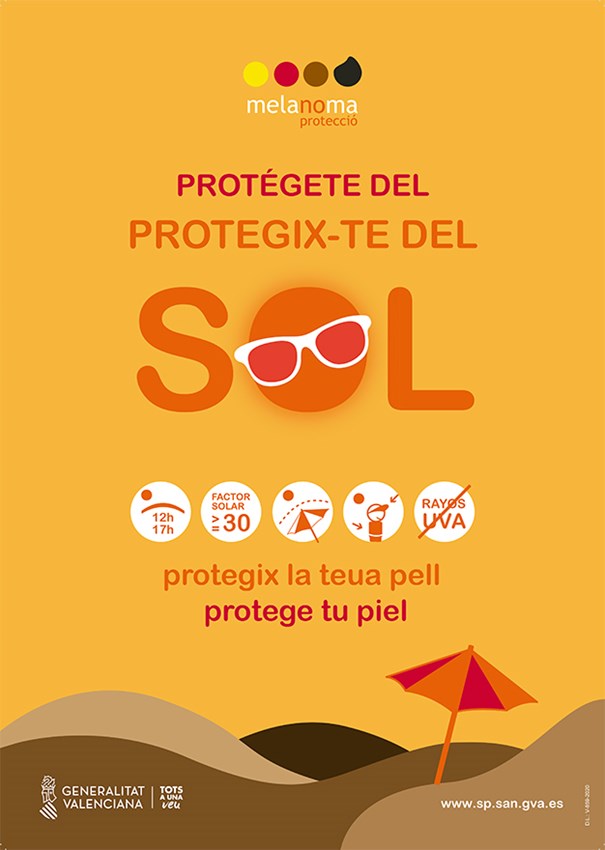 El departament de Sanitat de l'Ajuntament de Sagunt se suma a la difusió de la campanya informativa Protegix-te del sol llançada per la Conselleria de Sanitat Universal i Salut Pública de la Generalitat Valenciana amb l'objectiu de conscienciar a la població sobre la importància de protegir la pell i tindre precaució davant l'exposició al sol amb la finalitat de previndre el melanoma.