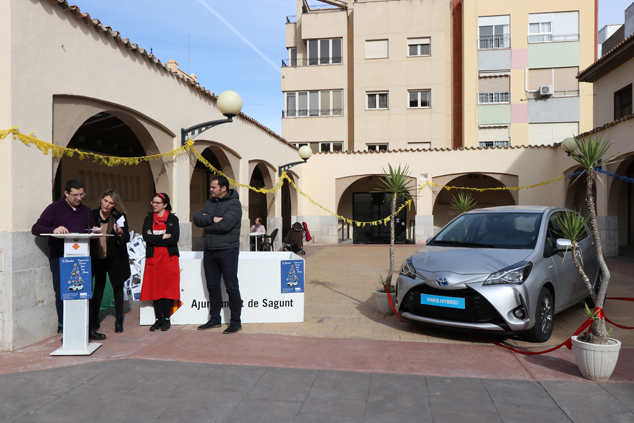 Este dimecres, 23 de gener, s'ha realitzat al pati porticat del Mercat Municipal de Sagunt situat en la Plaça Cronista Chabret de Sagunt a les 12.30 hores el sorteig del cotxe híbrid que es va exposar durant els mercats nadalencs de Sagunt i Port de Sagunt i en el qual han participat algunes de les persones que van comprar durant el període comprés entre el 21 de desembre de 2018 i 12 de gener de 2019, tots dos inclusivament, en qualsevol dels comerços de Sagunt.