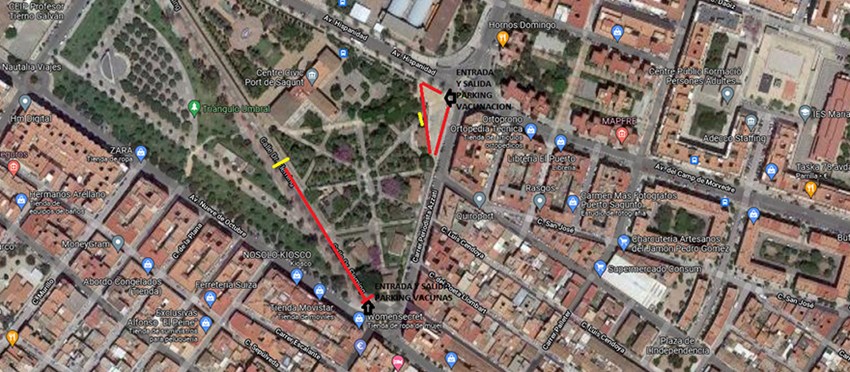 Així mateix, s'han establit zones d'aparcament en part del carrer Doctor Fleming així com en l'encreuament entre l'avinguda de la Hispanitat i el carrer Periodista Azzati. En la imatge que es troba ací baix es pot consultar el plànol.