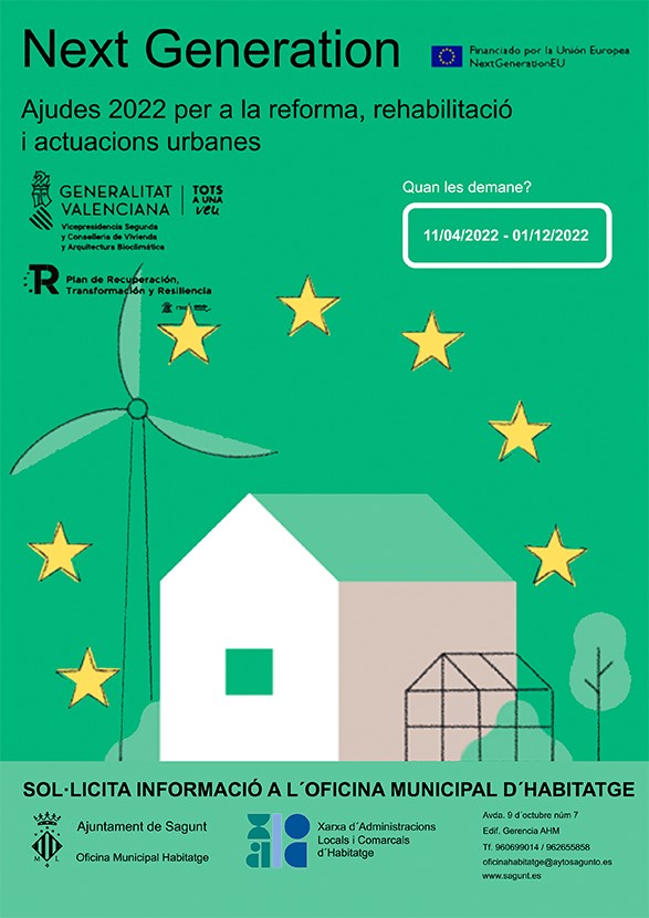 El termini de sol·licitud del programa d'ajudes amb fons europeus, Next Generation, per a la rehabilitació d'habitatges ja està obert. Este és un instrument de recuperació que pretén donar resposta a les conseqüències econòmiques i socials causades per la Covid-19, dins del Pla de Regeneració, Transformació i Resiliència del Govern.