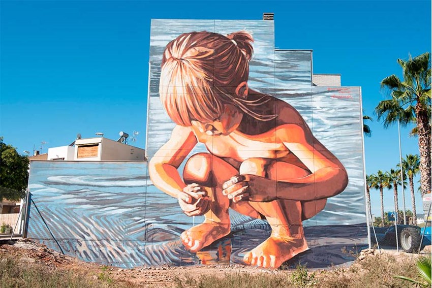 En la segona setmana del festival d'Art Urbà Més Que Murs, l'artista Anna Repullo ha acabat la seua intervenció artística, en la mitgera d'un habitatge adossat en l'avinguda Corona d'Aragó del Port de Sagunt. El títol del seu treball és Niña en la Orilla del Mar. La idea que l'artista pretén transmetre és la innocència de qui ho veu tot per primera vegada, explorant, aprenent... la xiqueta agafa un grapat d'arena, i arriben les sensacions de l'estiu: la calor suau, la brisa de la mar, el capvespre, un record d'infància que segur tots/as vivim fa més o menys temps... en un estil figuratiu buscant gestos i emocions sinceres.