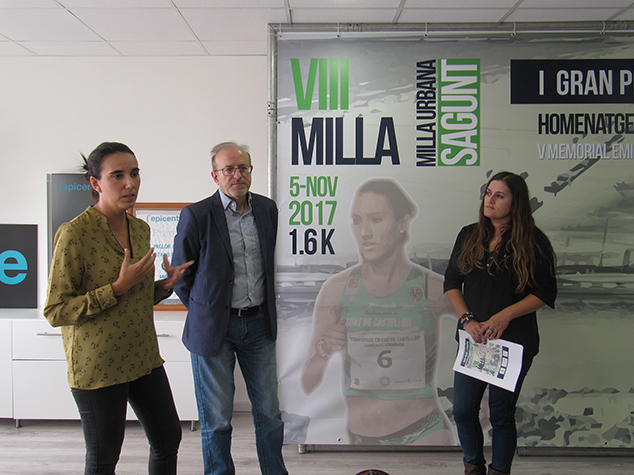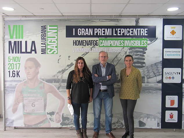 Hui, dimecres 18 d'octubre, s’ha presentat la VIII Milla Urbana de Sagunt V Memorial Emilio Villagrasa, I Gran Premi de l’Epicentre. A l'esdeveniment, realitzat en les oficines del centre comercial l’Epicentre, han assistit la directora del centre, Elena Ribelles, el regidor d'Esports, Miguel Chover, i la regidora d'Igualtat, María Giménez. La Milla Urbana tindrà lloc el 5 de novembre a les 10 hores, amb línia d'eixida al costat del centre comercial. El projecte ha sigut représ després de prop de 10 anys sense realitzar-se, i presenta grans expectatives de futur.