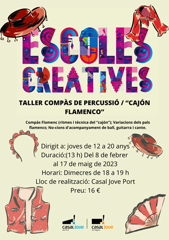 En este sentit, el taller de compàs de percussió i calaix flamenc es desenvoluparà del 8 de febrer al 17 de maig en el Casal Jove del Port de Sagunt. Allí els i les jóvens aprendran els ritmes i la tècnica del calaix flamenc, les variants dels pals flamencs i nocions d'acompanyament de ball, guitarra i cante. Esta activitat tindrà lloc els dimecres de 18.00 a 19.00 hores per a jóvens entre 12 i 20 anys.
