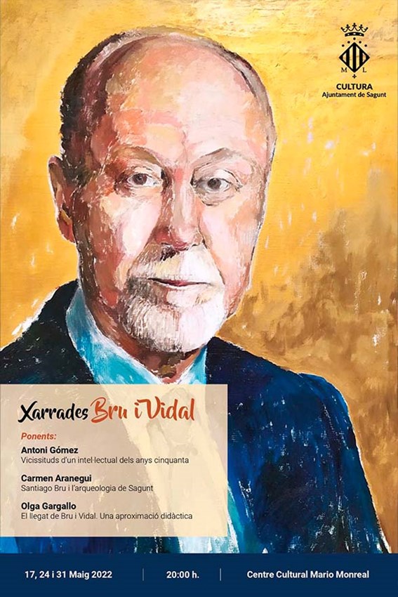 Amb motiu de la celebració del centenari del poeta local i historiador Santiago (Jaume) Bru i Vidal, el departament de Cultura de l’Ajuntament de Sagunt ha organitzat tres xerrades que seran impartides per tres experts en la seua vida i obra: Antoni Gómez, Carmen Aranegui i Olga Gargallo. Els col·loquis tindran llocs els dimarts, 17, 24 i 31 de maig, a les 20 hores en el Centre Cultural Mario Monreal.