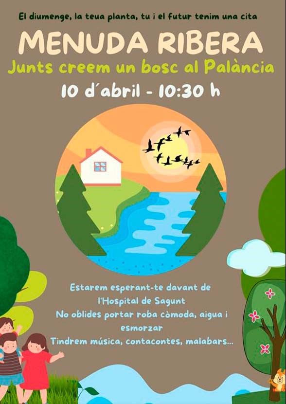 És per això, que diumenge que ve 10 d'abril, tindrà lloc la jornada festiva de reforestació, que començarà a les 10.30 hores davant l'Hospital de Sagunt. Durant el matí es durà a terme la plantació, a més de talls per als xiquets i xiquetes amb material reciclat, contacontes, grups de pallassos i malabaristes. Així doncs, serà necessari portar l'esmorzar i la beguda de casa, a més de roba còmoda per a la plantació.