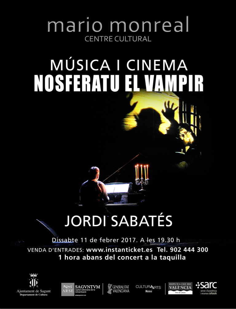 El pròxim dissabte 11 de febrer, a les 19.30 hores, el Centre Cultural Mario Monreal acollirà la projecció de “Nosferatu el vampir”, una adaptació de l'obra de Bram Stoker, amb música en directe. Esta projecció forma part de la programació d'hivern de l'àrea de Cultura de l'Ajuntament de Sagunt.