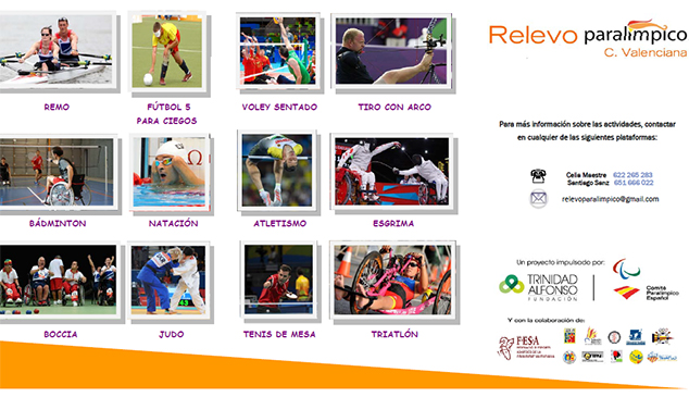 El dissabte 30 de setembre tindrà lloc un Clínic d'Atletisme Adaptat. L'activitat és part del projecte Relevo Paralímpico, encarregat de fomentar l'educació esportiva entre les persones amb discapacitat. La iniciativa està impulsada per la Fundació Trinidad Alfonso i gestionada pel Comité Paralímpico Español en col·laboració amb la Federació d’Esports Adaptats de la Comunitat Valenciana.