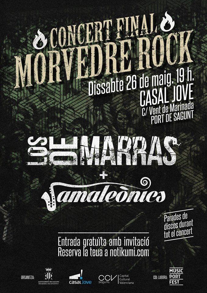 Junt als guanyadors del Morvedre Rock 3.0 també actua una banda convidada de prestigi estatal. És el cas de Los de Marras, grup valencià de rock conegut pel seu estil urbà i lletres compromeses. Amb sis àlbums a l’esquena, els valencians porten al Casal Jove el seu últim disc, Reamanecer.