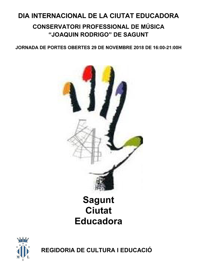D'altra banda, la ciutat de Sagunt pertany a la Xarxa Estatal de Ciutats Educadores. Amb este motiu, les delegacións de Cultura i Educació de l'Ajuntament de Sagunt en el dia internacional de la ciutat educadora té la intenció de cercar la implicació del món educatiu i la ciutadania per a democratitzar els espais culturals i poder gaudir-los i sentir-se orgullosos d'esta ciutat. El regidor de Cultura i Educació, José Manuel Tarazona, ha declarat que “una ciutat educadora és una ciutat de moviment i compromesa amb la educació i la formació constant de la ciutadania. És per això, que nosaltres per a celebrar este dia farem una jornada de portes obertes perquè tots i totes els que vulguen vindre passen a visitar el nostre conservatori que contribuix a la formació musical i a la difusió de la cultura en el nostre poble. Si som Capital Cultural Valenciana és perquè són també moltes les entitats que participen en l’àmbit públic o privat d'una manera o d’altra en este projecte conjunt que és el de ciutat educadora”.