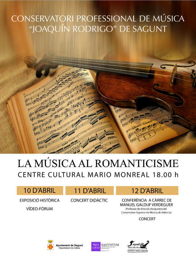 El Conservatori Professional de Música Joaquín Rodrigo porta el cicle Música Romàntica al Mario Monreal. El Centre Cultural Mario Monreal acollirà els dies 10, 11 i 12 d’abril el cicle amb una conferència, una exposició i un concert.