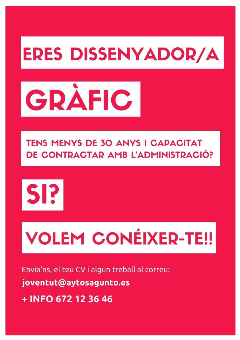Ara, este suport es farà de manera directa als creadors i creadores del món del disseny gràfic, que tenen una oportunitat de treballar amb la regidoria de Joventut i Infància de l'Ajuntament de Sagunt. Per a formar part d’este cens de dissenyadors locals, només s’ha d’enviar el curriculum vitae i el portafoli digital o algun treball a joventut@aytosagunto.es.