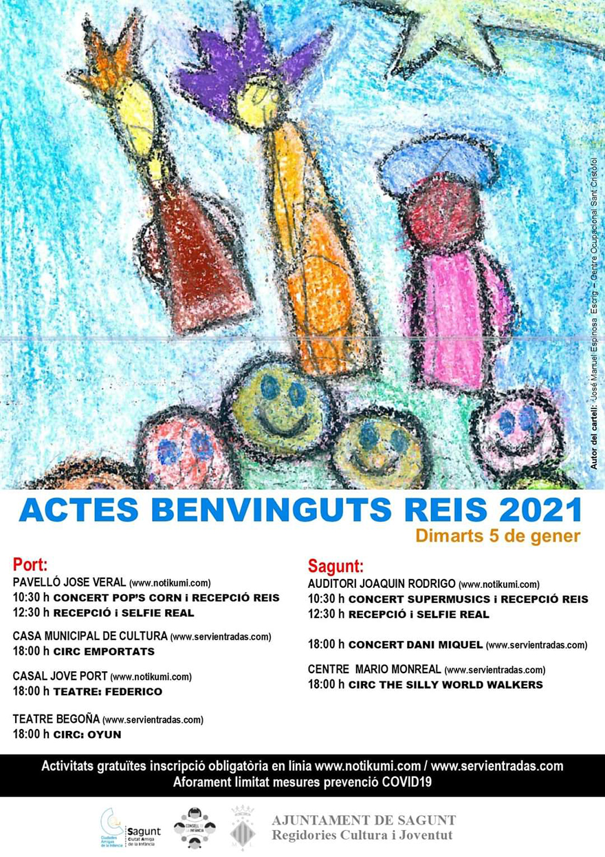 Les activitats previstes per al 5 de gener són dos actes musicals de benvinguda i les recepcions als Reis d’Orient. A Sagunt, a les 10.30 hores, l'Auditori Joaquín Rodrigo acollirà el concert Supermusics i la recepció dels Reis d’Orient; a les 12.30 hores serà l'oportunitat de fer-se un selfie reial amb els Reis d’Orient. En el poliesportiu José Veral del Port de Sagunt, a les 10.30 hores se celebrarà el concert Pop’s Corn i la recepció dels Reis d’Orient i, a continuació, a les 12.30 hores el selfie reial.