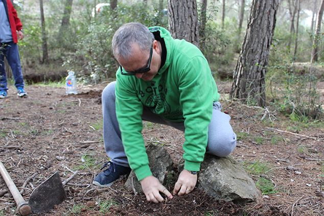 Una vegada acabat l'esmorzar, es va procedir a la repoblació d'aqueixa zona del bosc amb centenars d'exemplars de quatre tipus d'arbres: llentiscles, pins blancs, carrasques i arboços. Durant la planta, es va col·locar una pancarta de la plataforma ciutadana creada per a la protecció d'esta muntanya com a paratge natural municipal i es va compartir amb el públic experiències i il·lusions.
