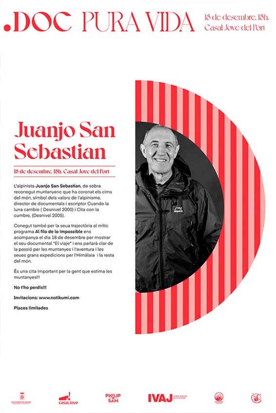 El festival de documentals PuntoDOC organitzat per la regidoria de Joventut i Infància de l'Ajuntament de Sagunt torna dissabte que ve, 18 de desembre, amb el documental El viaje, basat en la vida de l'alpinista Juanjo San Sebastián. L'elecció d'esta projecció es deu al fet que el passat 11 de desembre va ser el Dia Internacional de les Muntanyes, per la qual cosa des de la regidoria han apostat per tornar a llançar la seua secció de documentals de muntanya Pura Vida.