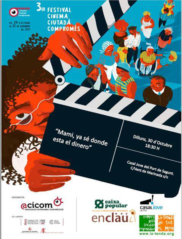 El pròxim dilluns 30 d’octubre el «Festival de Cinema Ciutadà i Compromés» que organitza ACICOM (Associació Ciutadania i Comunicació), amb la col·laboració de la regidoria de Joventut de l’Ajuntament de Sagunt, marxarà al Port de Sagunt per parlar de macroeconomia i compromís social. Per això, comptarà amb la projecció a les 19 hores del film documental d’Arturo Cisneros “Mami, ya sé dónde está el dinero”.