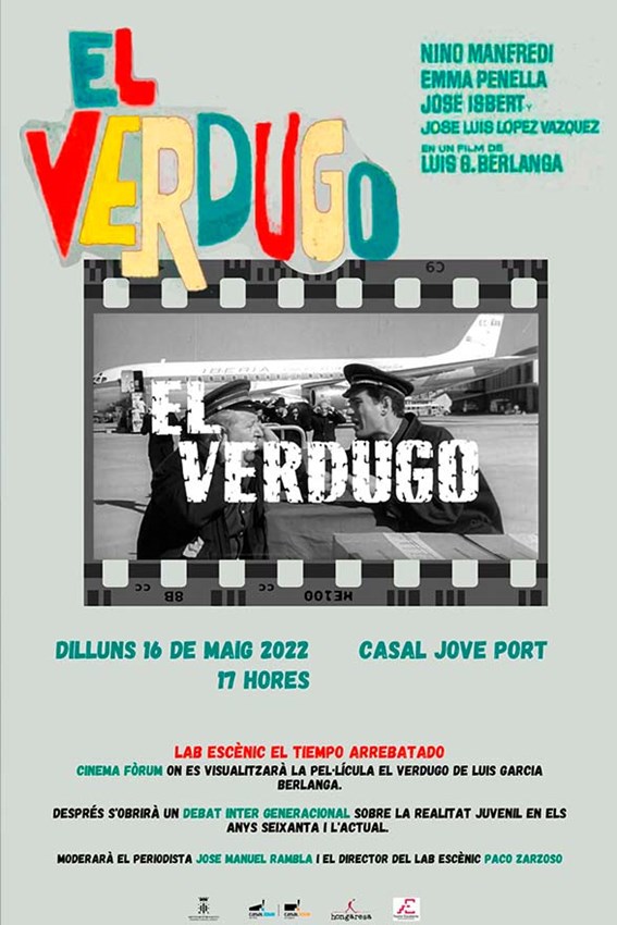 El pròxim dilluns 16 de maig es projectarà al Casal Jove del Port de Sagunt la pel·lícula El Verdugo (1963) de Luis García Berlanga. Es tracta d’una projecció amb l'objectiu d'obrir un debat intergeneracional, dins dels preparatius del Lab Escènic El Tiempo Arrebatado, que dirigix el dramaturg Paco Zarzoso i en el qual col·labora el Teatre Escalante i la regidoria de Joventut i Infància de l'Ajuntament de Sagunt.