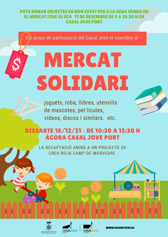 La regidoria de Joventut i Infància de l'Ajuntament de Sagunt a través dels grups de participació del Casal Jove organitzen el Mercat Solidari, que tindrà lloc el dissabte, 18 de desembre, de 10.30 a 13.30 hores en l'Àgora del Casal Jove de Port de Sagunt.