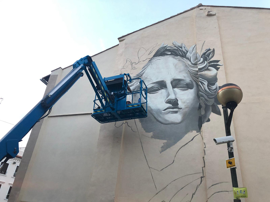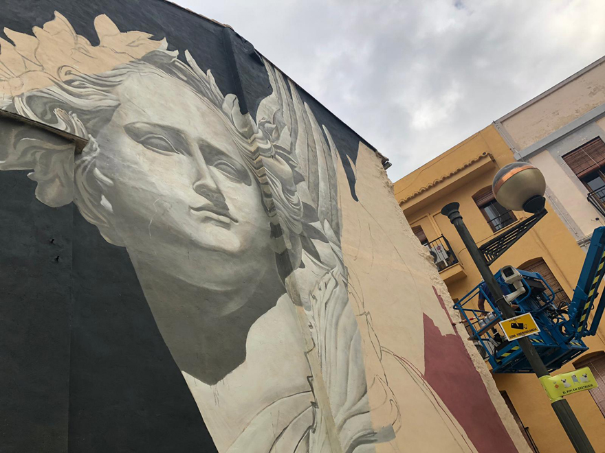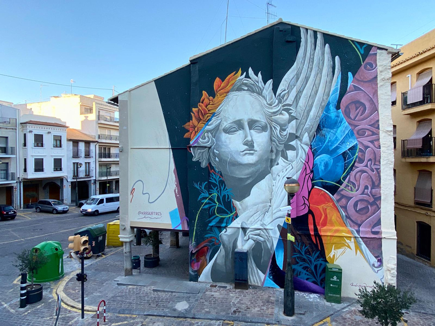 El festival d'art urbà Més Que Murs, organitzat per la Regidoria de Joventut i Infància de l'Ajuntament de Sagunt, arriba a l'equador de l'edició de 2020 amb el mural que l'artista murcià Kraser ha realitzat a la cantonada de la plaça Major amb el carrer Castell.
