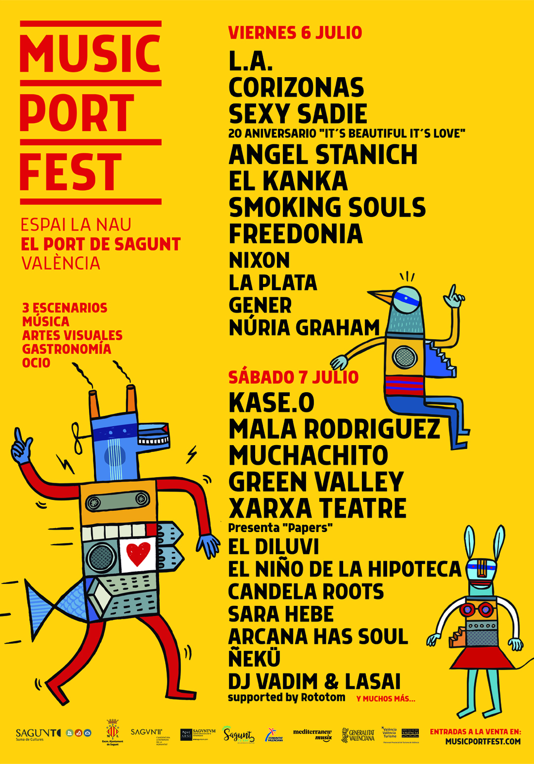 Cal recordar que el Music Port Fest ja ha confirmat la presència de més de vint artistes, entre els qual cal destacar Kase.O, Mala Rodríguez, Muchachito, L.A., Corizonas o Freedonia, entre d’altres. A més, hi haurà una important presència de bandes valencianes, amb Smoking Souls, La Plata, Gener, El Diluvi, Candela Roots o Arcana Has Soul.