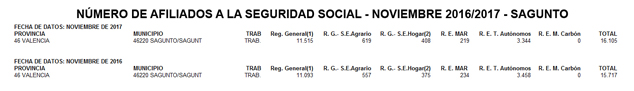 Pel que fa al nombre d'afiliats a la Seguretat Social, des de març de 2015 el numero de persones afiliades ha augmentat en més de 1.200, segons explica Fernández, la qual cosa suposa “ser un dels referents en recuperació d'ocupació”. Contínua destacant que “este procés s'ha incrementat més a partir de l'any 2017, entre març i novembre, ja que, solament en estos huit mesos, hi ha pràcticament 800 persones més afiliades a la Seguretat Social”.