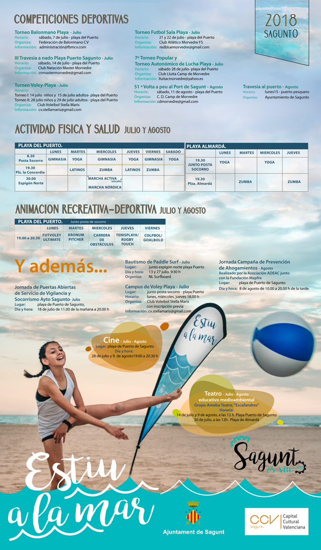 L’Ajuntament de Sagunt ja ha presentat l'edició 2018 d’Estiu a la Mar, un programa destinat a realitzar activitats esportives i lúdiques en la platja durant els mesos de juliol i agost.