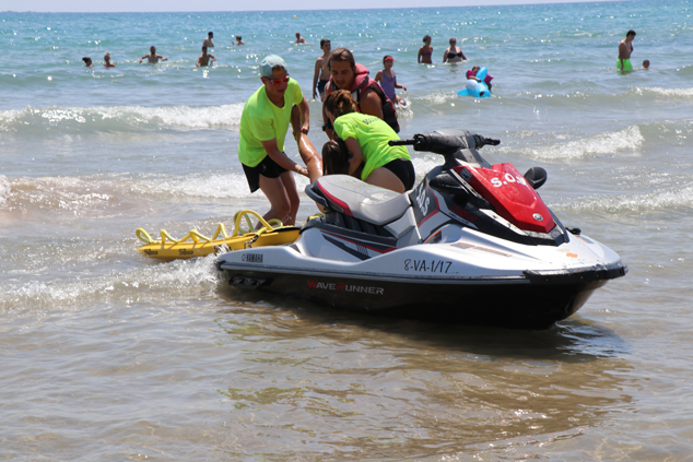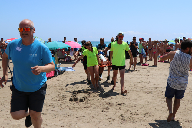 El simulacre ha consistit en el rescat d'una víctima que es trobava totalment inconscient en l'aigua. Una vegada ha sigut albirada des de la torre de control, tant el grup de socorrisme i salvament marítim com el dispositiu de policies locals s'han coordinat a la perfecció per a realitzar el rescat. La moto aquàtica del servici de socorrisme i l'embarcació de la Policia Local han aconseguit rescatar la víctima i s'ha habilitat una zona de seguretat que ha permés que la moto aquàtica la traslladara fins a la vora, on, entre altres mesures, se li han realitzat exercicis de reanimació cardiopulmonar. Posteriorment, han traslladat la víctima a l’hospital amb l’ambulància.